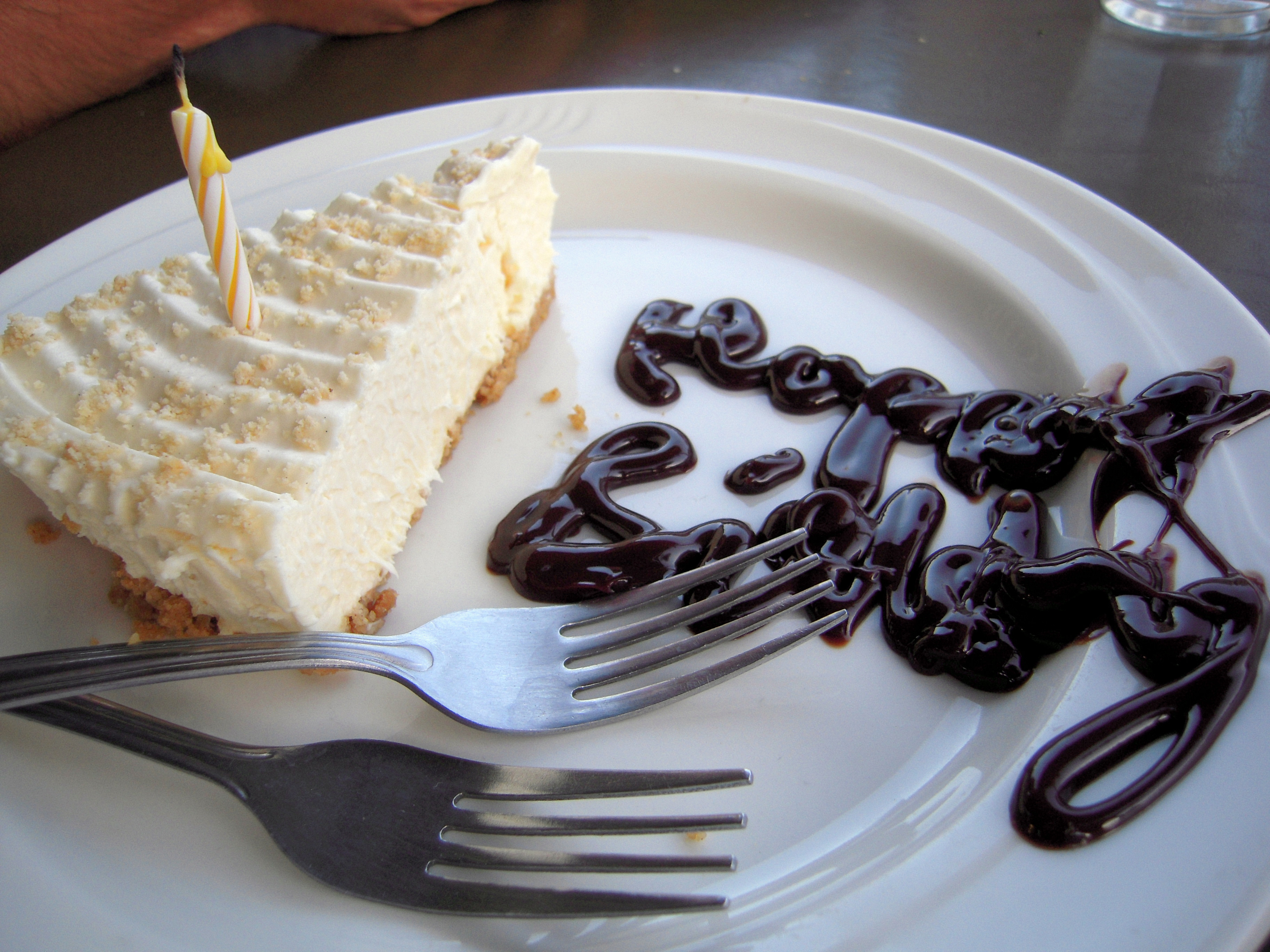 Both dishes tasted similar to their beef counterparts, but were leaner. Our server Lea offered a great finale to the end of an excellent birthday with New York cheesecake. And even though I’d previously made fun of Jan for celebrating his birthday for the entire month of April, I did have to admit that celebrating my birthday for a week and a half was far better than my previous attempts to simply pretend the day wasn’t different from any other. I had, by that time, completely forgotten about getting another year older.