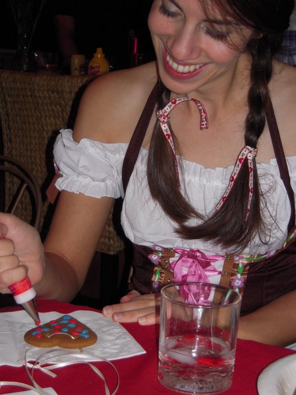 I also thought it would be fun activity to decorate our own Lebkuchen during the party, which are decorated gingerbread hearts that can be worn during Oktoberfest celebrations. (And yes, I am the nerd who printed out the Wikipedia article and placed it at the decorating table along with some StockFood.com pictures for inspiration.)