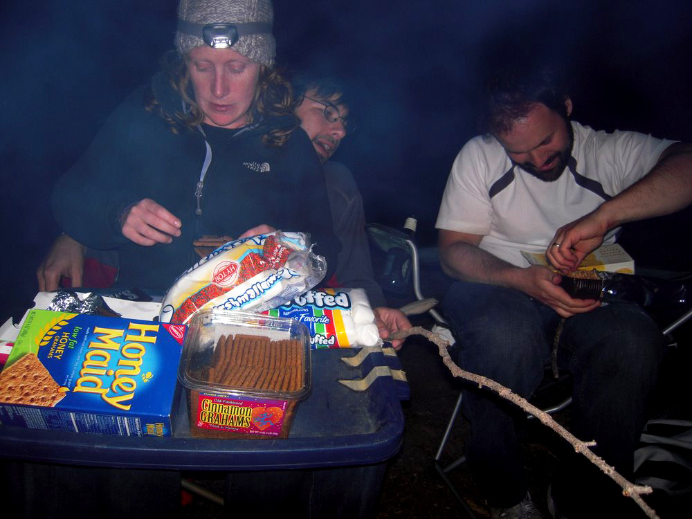 Jan and I spent last weekend camping with a group of friends at Huntington Lake, which meant in addition to the “regular” food we were bringing, we also brought plenty of s’mores supplies to go around. Jan did our shopping and bought the ingredients for the classic American s’mores: Honey-Maid graham crackers, Jet-Puffed marshmallows, and Hershey’s milk chocolate and Special Dark bars.