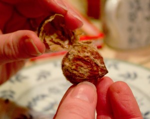 Having tried the chestnuts, I can’t say I’d want to eat them again (or perhaps they are an acquired taste?) Quite the opposite of blue cheese, chestnuts smell better than they taste. But, there is something about the aroma of chestnuts roasting (not on an open fire, in our case—we used the oven), that embodies winter and all that goes along with it—cold weather outside, and the warmth and coziness of being with good friends inside.