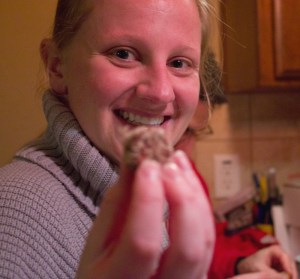 A few minutes later, with the house smelling fragrantly rich and sweet, Jan presented us with a bowl of the oven roasted chestnuts, which we immediately got to work peeling. Chestnuts are a bit like hard boiled eggs, the longer you wait to remove the shell, the harder the work will be. So even though our fingers were burning from the heat, we quickly worked to remove the outer husk and after that, the second fuzzy shell.
