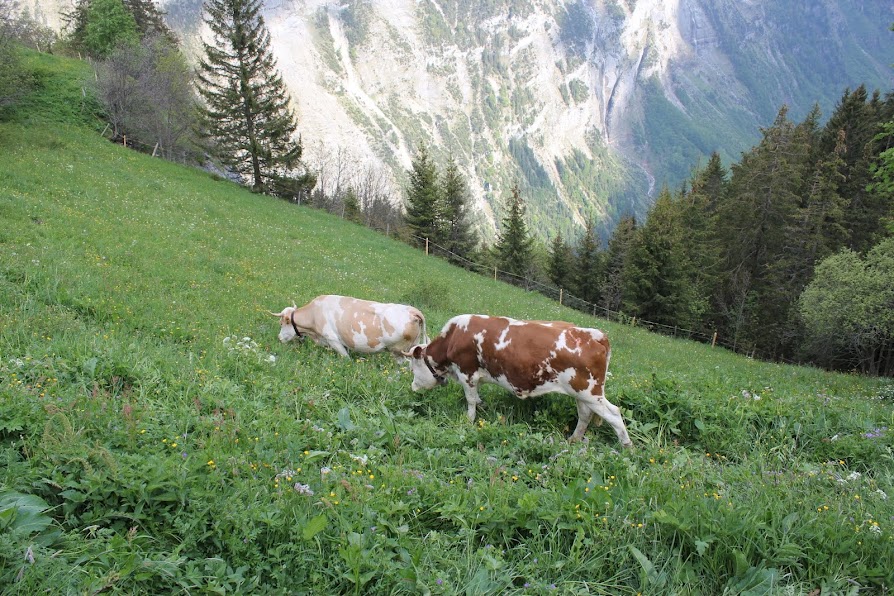 Back in Gimmelwald, instead of overdoing it on cheese we had that first night at Restaurant Swiss Chuchi, we enjoyed Swiss wine and a simple dinner of veal, potatoes, and vegetables.  This location was more about seeing where the dairy products came from, not overdoing it eating too much of them.  This day brought me my second and most important realization that despite hearing otherwise, happy cows come from Switzerland.  Again, that it wasn’t necessarily about the cheese, but this happy, peaceful feeling behind it.