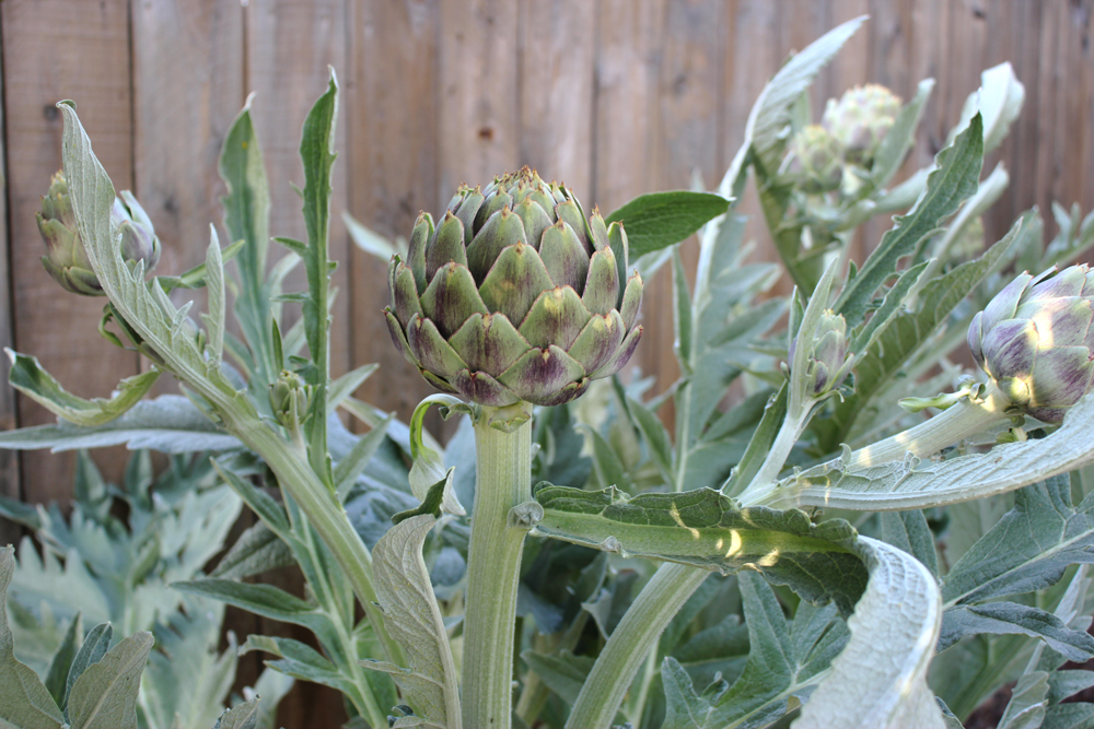 We were right to follow advice to plant the artichoke plant away from the rest of our vegetable garden, as it continued to grow very large, resembling a giant weed. Allowed to grow unhindered, the plant now has a six-foot diameter, taking up an entire corner of our backyard garden. Continue reading →