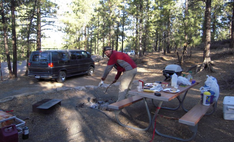 Notice the snow behind the Baby Q: Camping in the snow in Santa Fe, New MexicoFajitas at Grand Canyon National Park, ArizonaAt the Coors Factory in Golden Colorado, they give you lots of free beer!